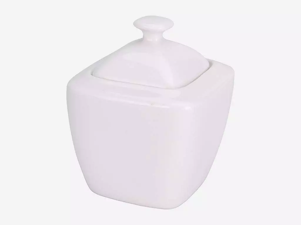 Valkoinen sokerikko kannella. Tilavuus 320ml Koko 10x10x11,5cm Posliinia