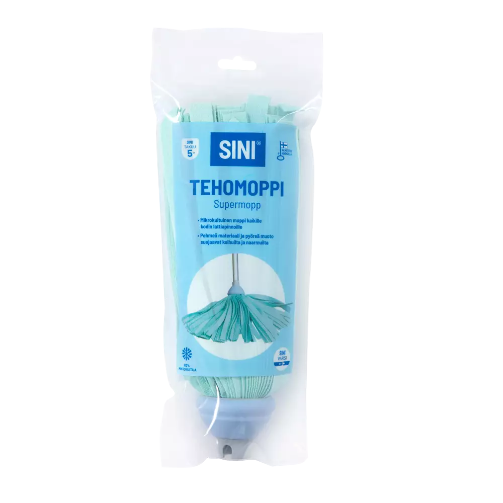 Kaikkien kodin lattiapintojen pesuun. Kätevä jalkalistojen, portaiden ja nurkkien puhdistukseen. Moppirungon pehmeä materiaali ja pyöreä muoto suojaavat kolhuilta ja naarmuilta. Konepesu pesupussissa 60 asteessa. Sopii kaikkiin SINI-varsiin (ikoni)