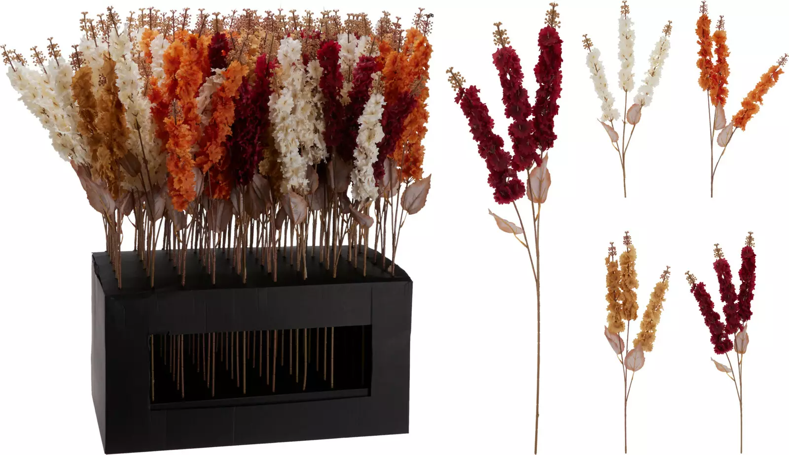 Kaunis ja näyttävä koristekukka, jossa kolme kukkahaaraa ja lehdet. Kukat tuovat luonnollista ja lämmintä tunnelmaa sisustukseen ympäri vuoden – täydellinen esimerkiksi maljakkoon, asetelmiin tai kausikoristeisiin.Koko: 70 cmMateriaali: 90 % polyesteri, 10 % muovi3 kukkahaaraa ja lehdetLajitelmavärit: luonnonvalkoinen, vaaleanruskea, oranssi ja viininpunainenJokaisessa varressa ripustustagiPakkaus: 60 kpl mattamustassa pöytätelineessäVoit ilmoittaa väritoiveesi ostoskorin lisätietokentässä. Mikäli toivomaasi mallia ei ole varastossa, toimitamme tilalle sattumanvaraisen mallin varastotilanteen mukaan.