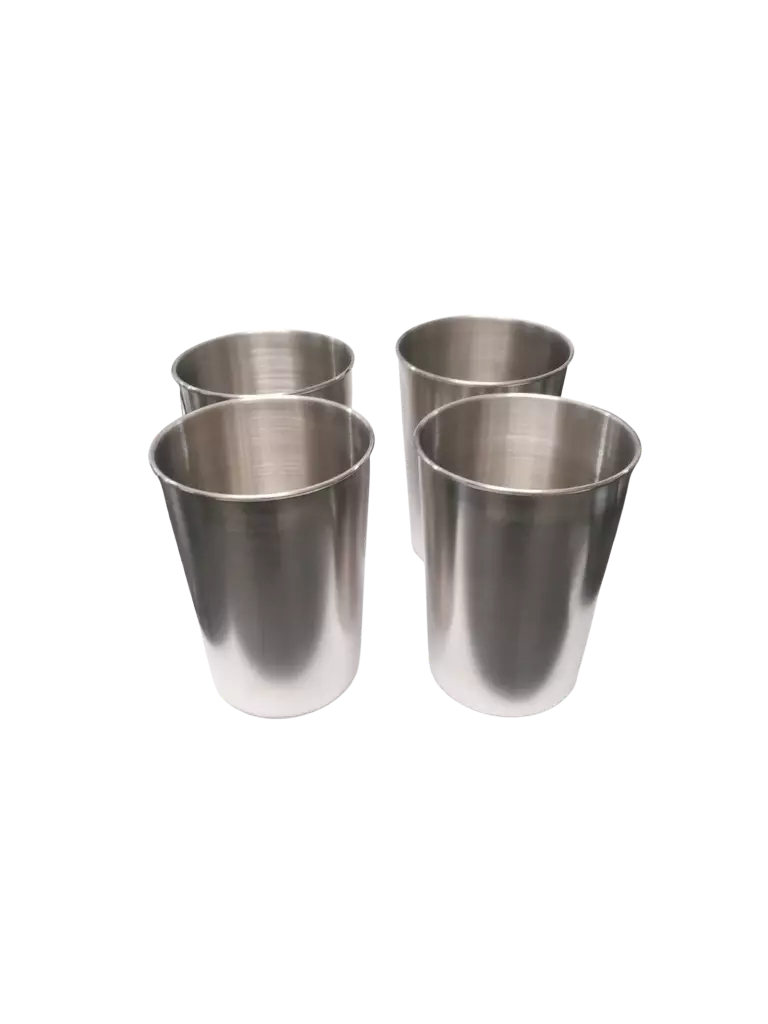 4kpl 0,33L mukeja 18/8 elintarvike turvalllista ruostumatonta terästä. Kasattava, helposti kuljetettava. Konepestävä. Täydellinen retkeilyyn.