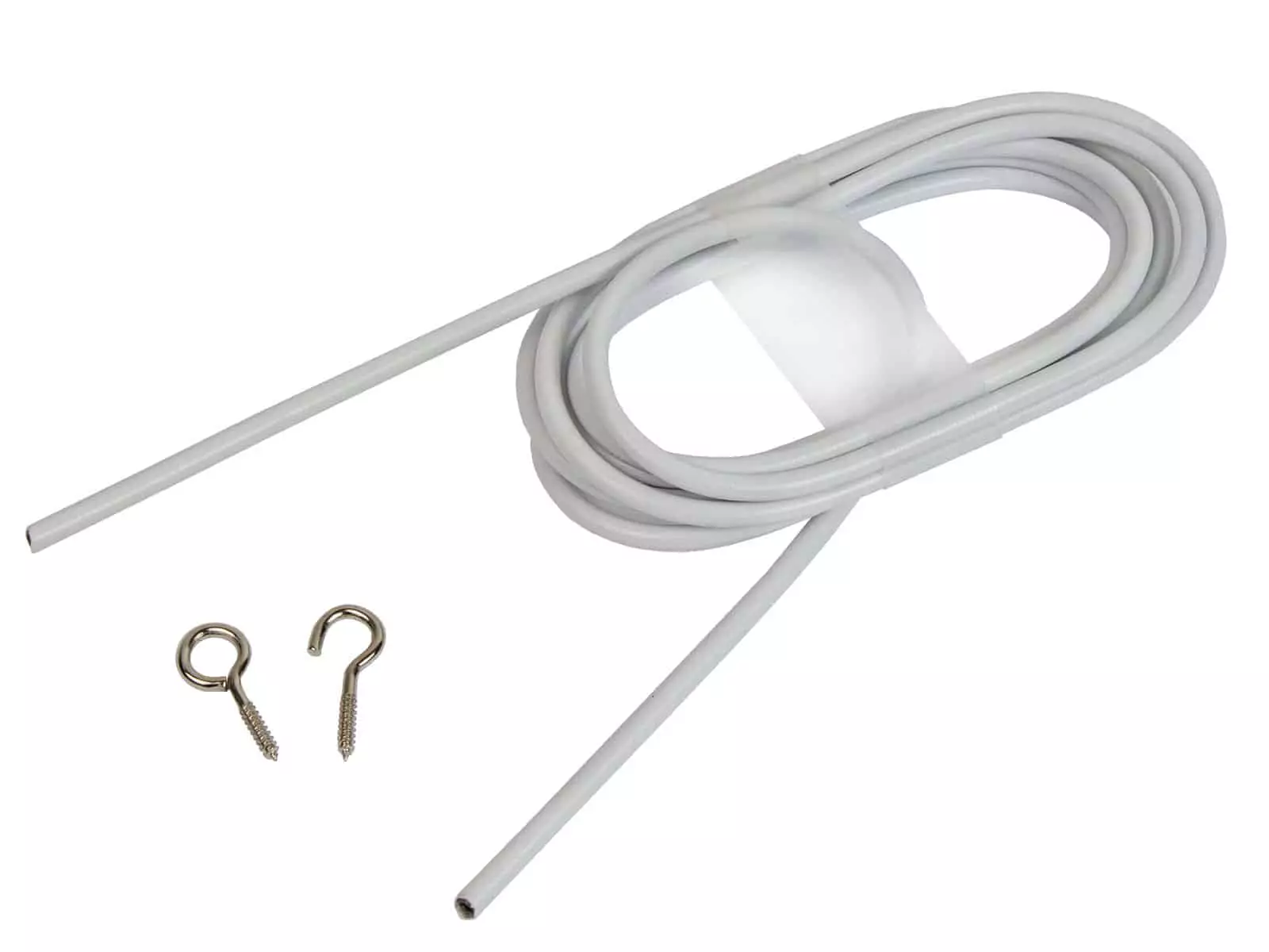 Verhovaijerilla ripustat verhot helposti erityisesti pieniin ja ahtaisiin tiloihin.Verhovaijerin voi sahata rautasahalla tai leikata sivuleikkureilla sopivaan mittaan. Mittaa pituus ennen sahausta. Kiinnitä ensin koukkuruuvit ikkunan karmiin. Ruuvaa silmukkaruuvit vaijerin päihin ja venytä vaijeri koukkuihin.Väri: valkoinenMateriaali: teräs, muovitettu pintaPituus: 5 mpakkaus sisältää 10 kpl koukkuja ja silmuruuveja.