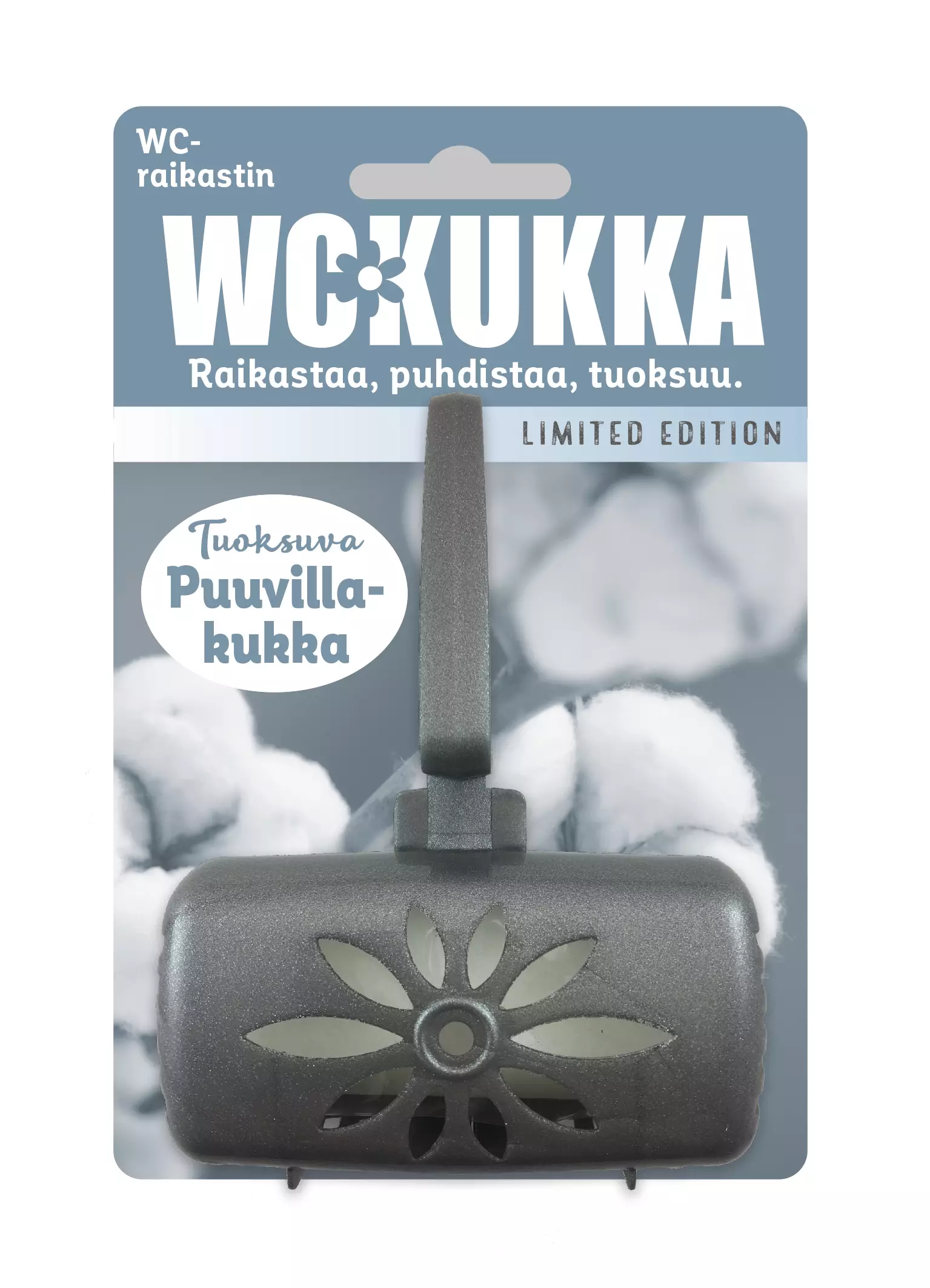 WC Kukka Puuvillakukka wc-raikastin puhdistaa wc-altaan ja antaa raikkaan tuoksun jokaisella huuhtelukerralla. WC-raikastin ennaltaehkäisee kalkin muodostumista ja poistaa epämiellyttäviä hajuja. Pehmeä, mieto ja puhdas tuoksu.