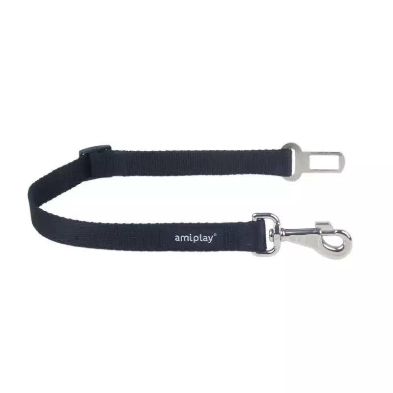 Ota ystäväsi huoletta mukaan kauppareissulle tai vaikkapa sienimetsään! Amiplayn kätevä turvavyökiinnike napsautetaan kiinni pantaan tai valjaisiin, ja useimpiin automalleihin sopiva toinen pää turvavyön lukkoon. Hihnaosa on säädettävä 45-65 cm välillä, joten turvavyökiinnike palvelee monen kokoisia koiria — tai miksei seikkailullisia kissojakin!