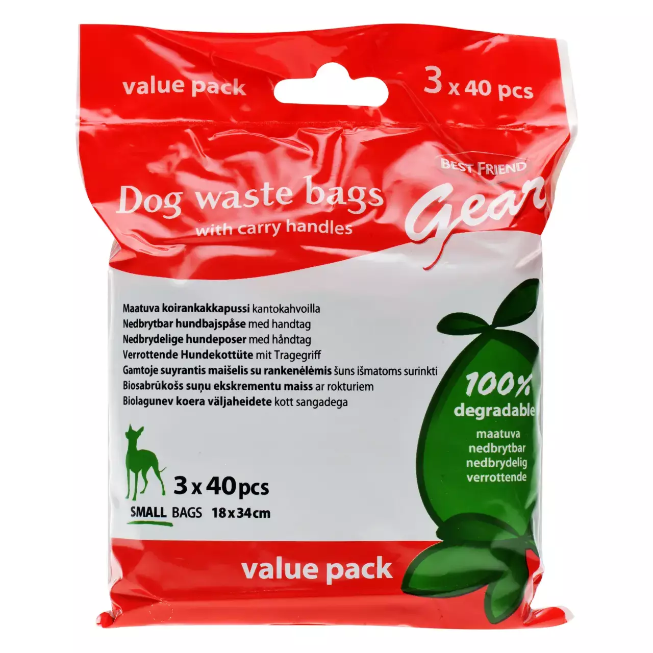 Best Friend koiran kakkapussi on 80 % kierrätysmuovista valmistettu. Pakkaus sisältää kolme rullaa, jossa jokaisessa on 40 pussia. Pusseissa on kätevät kantokahvat, joilla pussin suu on näppärä sitoa kiinni. Kakkapussin koko on S (18 x 34 cm), joka soveltuu pienemmän koiran jätöksille. Koiran jätös pusseineen hävitetään sekajätteen mukana.