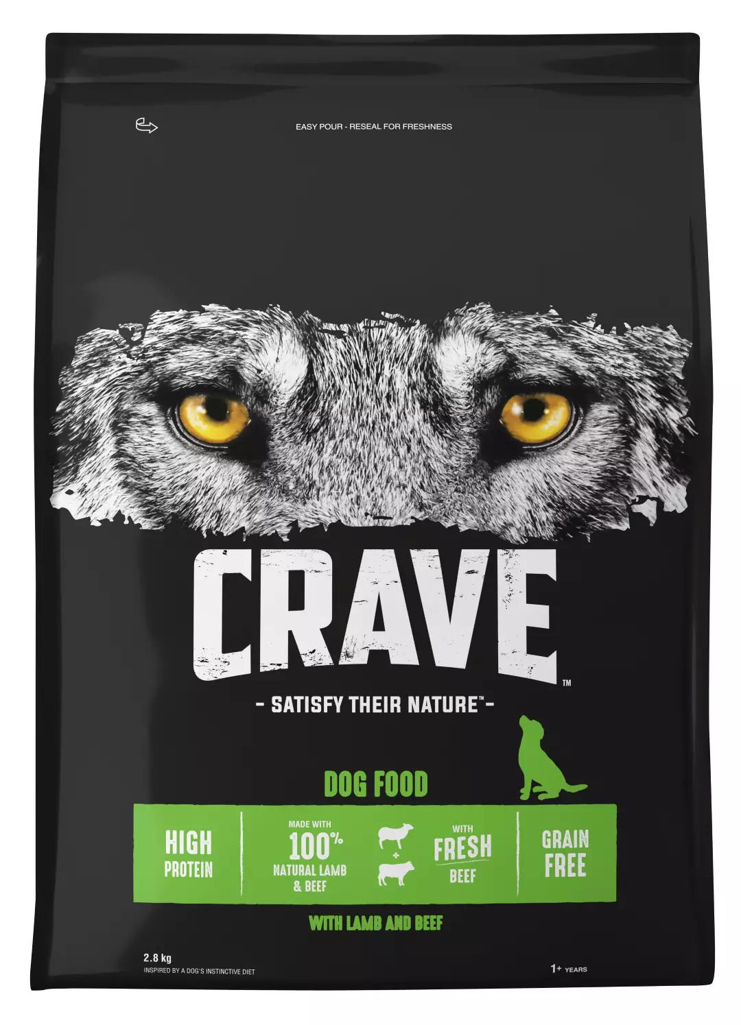 CRAVE™ on proteiinipitoinen ruokavalio koirallesi, joka imitoi koirien villien esivanhempien ruokavaliota. Täysravinto, joka sisältää vähintään 60% proteiinipitoisia eläinperäisiä ainesosia, kuten lammasta ja härkää. CRAVE™ koiran kuivaruoka on viljaton. - Liha on tärkein ainesosa: Vähintään 60% eläinperäisiä ainesosia - Korkea proteiinipitoisuus: 34% proteiinia, koirien villien esivanhempien ruokavalion innoittamana - Viljaton: ei maissia, vehnää tai soijaa, eikä keinotekoisia makuja, värejä tai aromiaineita - Proteiinipitoinen täysravinto, joka sisältää koirasi tarvitsemat korkealaatuiset ravintoaineet INSPIRED BY A DOG'S INSTINCTIVE DIET CRAVE™. SATISFY THEIR NATURE.™ Tiedostamme että koirat haluavat maukkaan, proteiinipitoisen ruokavalion - ja syy siihen on yksinkertainen. Proteiinirikas ravinto tarjoaa ravintoaineet vahvalle ja terveelle koiralle sekä oikean määrän energiaa leikkiin. Villien esivanhempiensa ruokavalion tapaan, CRAVE™ on herkullinen koiranruoka, joka tehdään laadukkaasta eläinproteiinista ja viljattomana.
