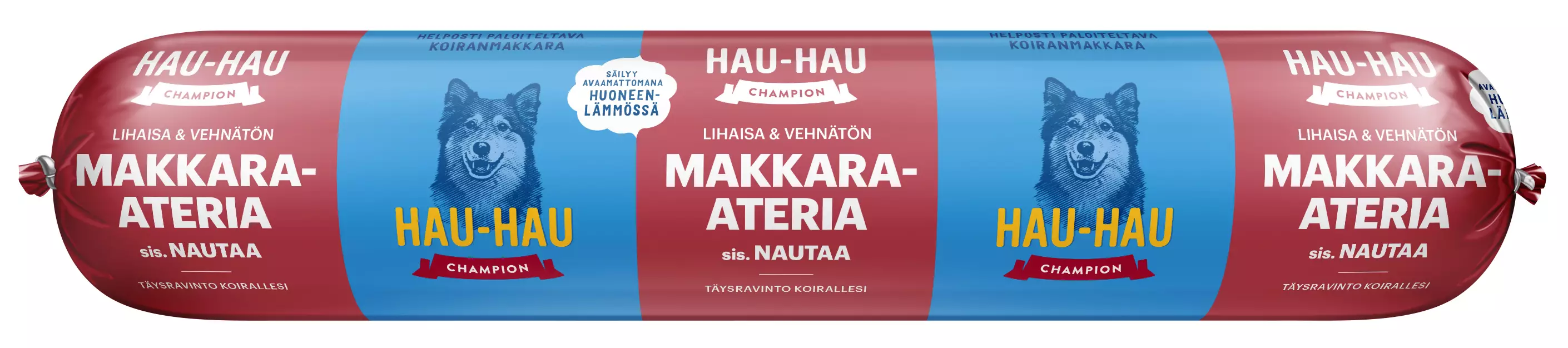 - Vehnätön ja lihaisa- Helposti paloiteltava koostumus- Säilyy avaamattomana huoneenlämmössä- Ei väri- tai säilöntäaineita- Tarjoa sellaisenaan tai lisukkeena kuivaruoan ohessa- Valmistettu Euroopassa Hau-Hau Champion Makkara-ateria nautaa on vehnätön ja lihaisa täysravinto kaikille koirille. Huolella suunniteltu resepti sisältää kaikki koirasi tarvitsemat ravintoaineet. Muotonsa pitävä makkara sopii hyvin ateriaksi sellaisenaan, kuivaruoan lisukkeeksi tai makupaloiksi harrastuksiin. Koiranmakkara säilyy avaamattomana huoneenlämmössä, joten se on mukava ottaa mukaan matkalle tai metsäretkelle.