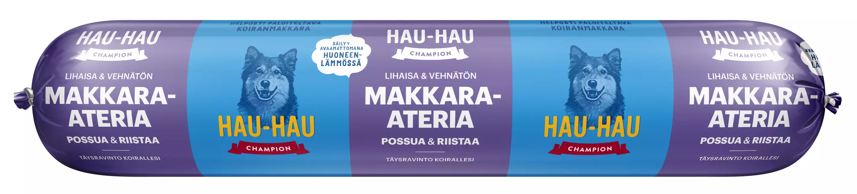 - Vehnätön ja lihaisa- Helposti paloiteltava koostumus- Säilyy avaamattomana huoneenlämmössä- Ei väri- tai säilöntäaineita- Tarjoa sellaisenaan tai lisukkeena kuivaruoan ohessa- Valmistettu Euroopassa Hau-Hau Champion Makkara-ateria possua ja riistaa on vehnätön ja lihaisa täysravinto kaikille koirille. Huolella suunniteltu resepti sisältää kaikki koirasi tarvitsemat ravintoaineet. Muotonsa pitävä makkara sopii hyvin ateriaksi sellaisenaan, kuivaruoan lisukkeeksi tai makupaloiksi harrastuksiin. Koiranmakkara säilyy avaamattomana huoneenlämmössä, joten se on mukava ottaa mukaan matkalle tai metsäretkelle.