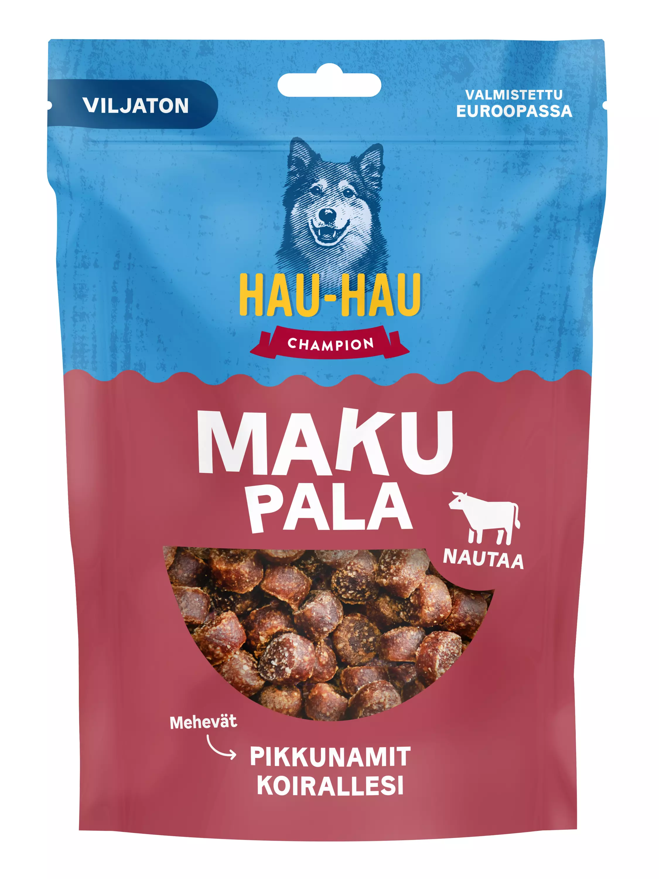 - Viljaton nami koiralle- Vähän rasvaa, runsaasti makua- Herkutteluun ja palkitsemiseen- Valmistettu Euroopassa Hau-Hau Champion Makupala nauta on täysin viljaton ja siten myös herkkävatsaiselle koiralle sopiva koiranherkku. Kiinteä nami ei sotke taskujasi ja on näppärän kokoinen koirasi koulutukseen, etenkin jos koirasi opettelee uusia taitoja ja tarvitsee tiheää palkkaamista. Mehevät ja vähärasvaiset namit sisältävät maistuvaa nautaa sekä siipikarjaa. Maukas ja vatsaystävällinen palkka on jokakoiranoikeus!