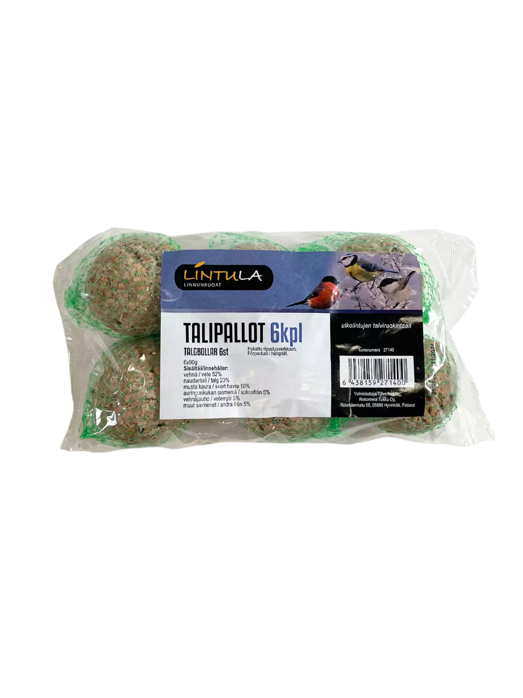 Lintula Talipallot 6 x 90 gLintula-talipallot tarjoavat luonnonvaraisille linnuille runsasenergistä ravintoa erityisesti talviaikaan, jolloin ravinnon saanti on haastavaa. Talipallot sisältävät... Lue lisää