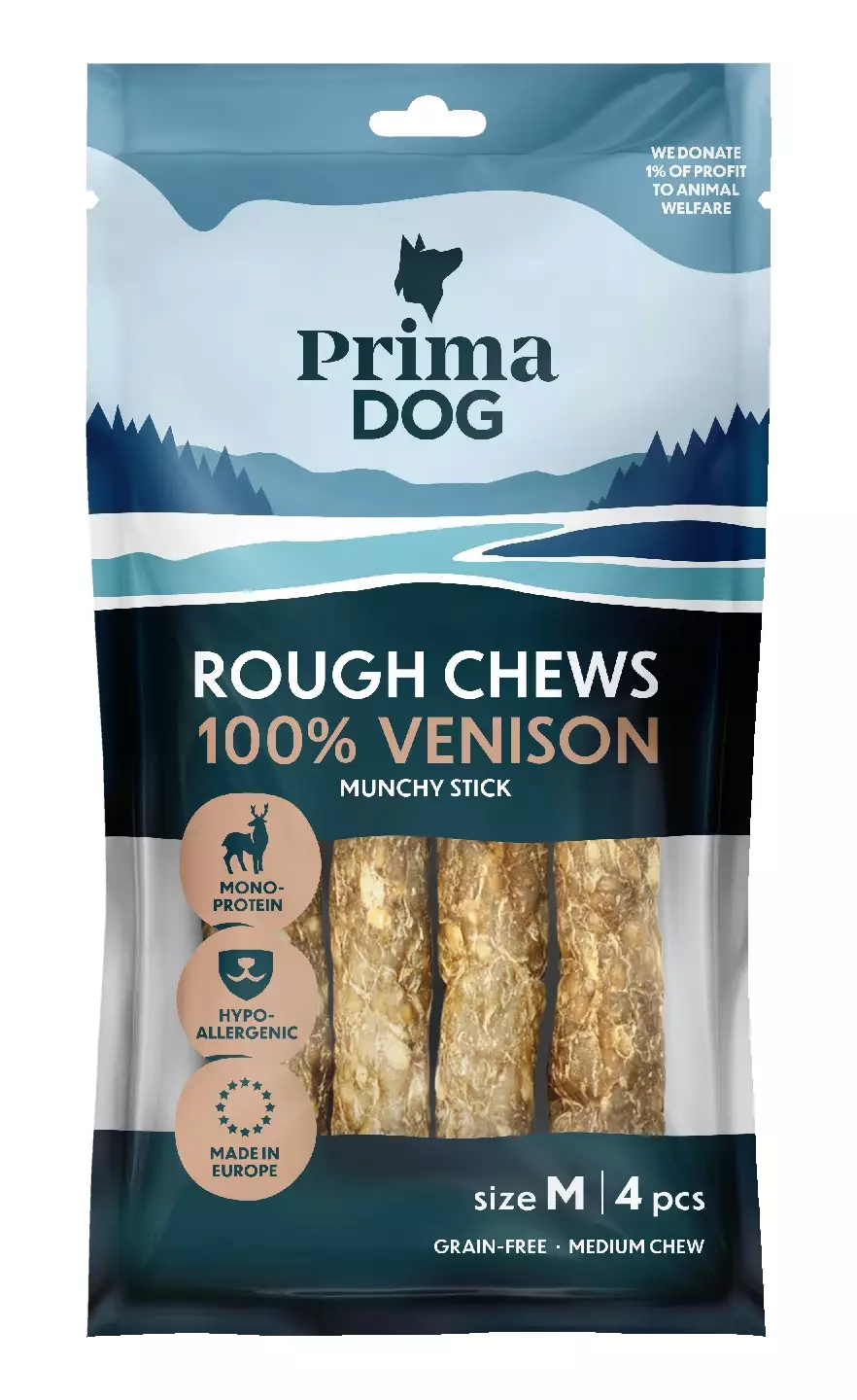 - Valmistettu 100 % peurasta- Hypoallergeeninen- Viljaton ja säilöntäaineeton- Kevyeen pureskeluun- Suun ja hampaiden hyvinvointiin- Valmistettu Euroopassa PrimaDogin Rough Chews 100% Venison -rouhepuruluu on hypoallergeeninen vaihtoehto koiran suun terveyden tukemiseen. Kokonaan peurasta valmistettu puruluu sisältää vain yhtä eläinproteiinia, ja voi sopia myös koirille, jotka ovat saaneet allergisia oireita muista proteiinin lähteistä. Viljaton ja säilöntäaineeton 100% Venison -rouhepuruluu sisältää runsaasti proteiinia ja vain vähän rasvaa, ja sopii koostumuksensa ansiosta myös kevyemmälle puruvoimalle. Rough Chews -puruluut valmistetaan Euroopassa laadusta tinkimättä.