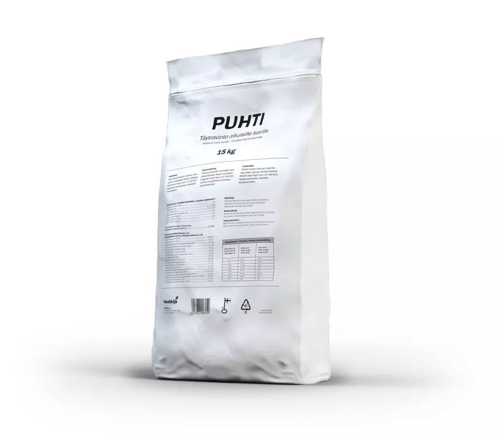 Puhti on laadukas, Suomessa valmistettu, erittäin energiapitoinen ruoka, joka soveltuu erinomaisesti kovassa rasituksessa oleville koirille. Se sisältää runsaasti valkuaista sekä E-vitamiinia, jotka ovat tärkeitä ravintoaineita aktiivikoiran arjessa.
