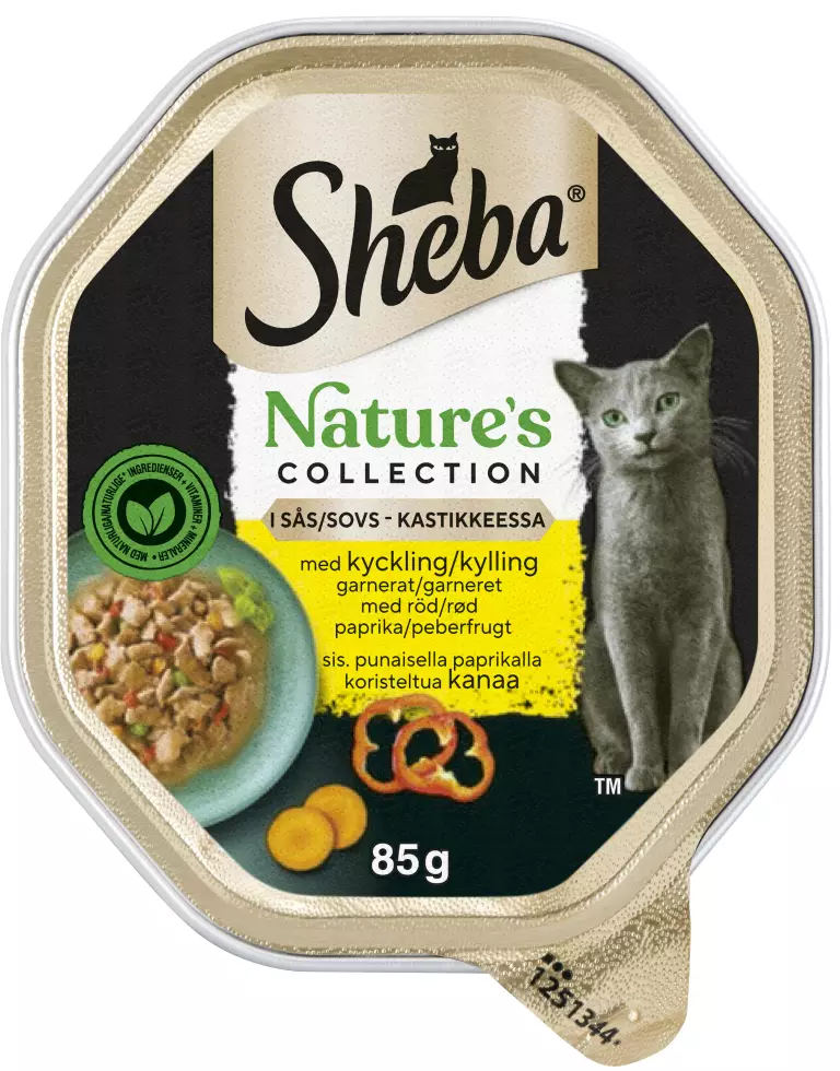 Mestarillisesti valmistettu kissanruoka-ateria korkealaatuisista ainesosista, joita kissasi rakastaa. Viljaton resepti ilahduttaa kissakaverisi luonnon parhailla antimilla. Ei lisättyjä väri- tai säilöntäaineita. Saatavilla kätevissä ja kierrätettävissä Sheba 85g kissanruokatarjottimissa.