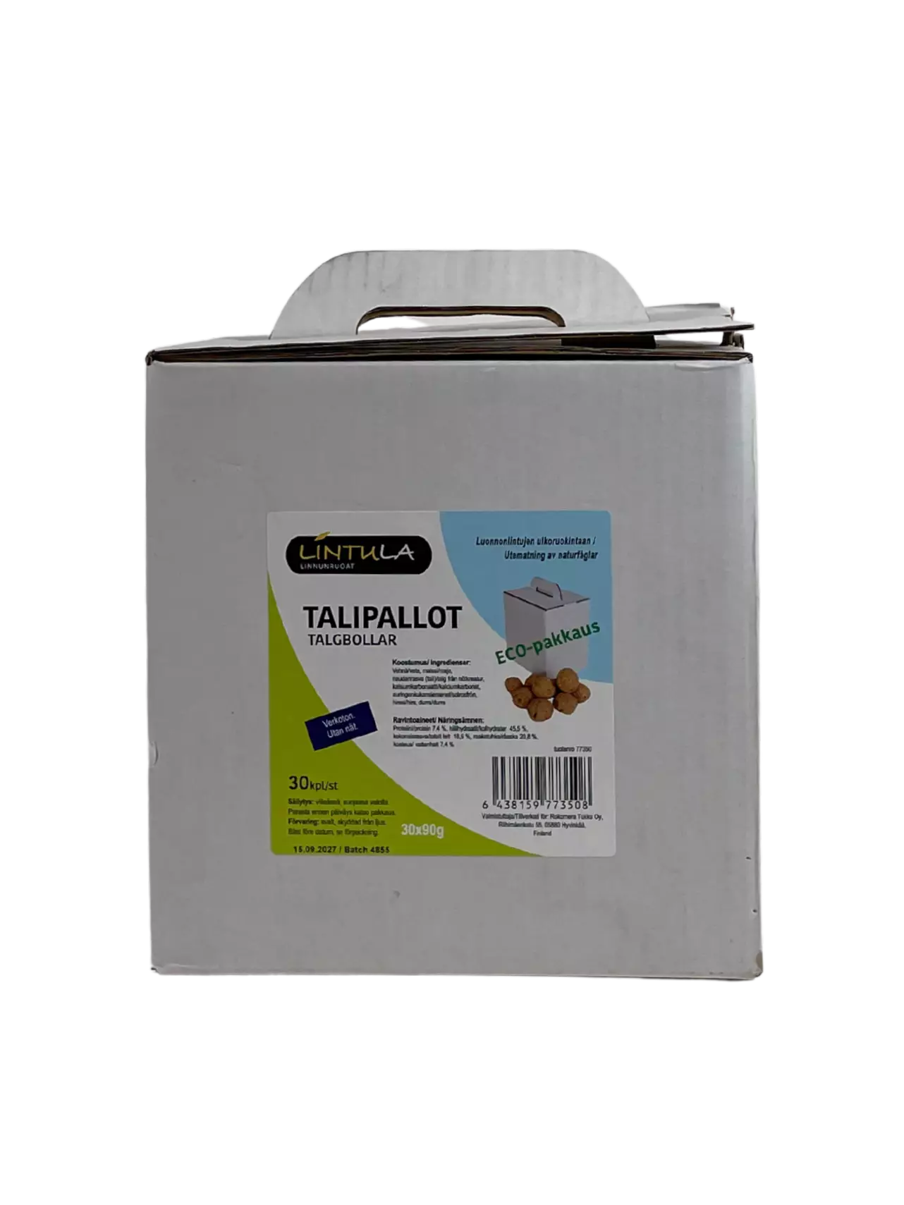 Lintula Talipallot ilman verkkoa EKO 30 x 90 gLintula EKO-talipallot tarjoavat luonnonvaraisille linnuille ravitsevaa ja energiaa sisältävää ruokaa ympäristöystävällisessä muodossa.... Lue lisää