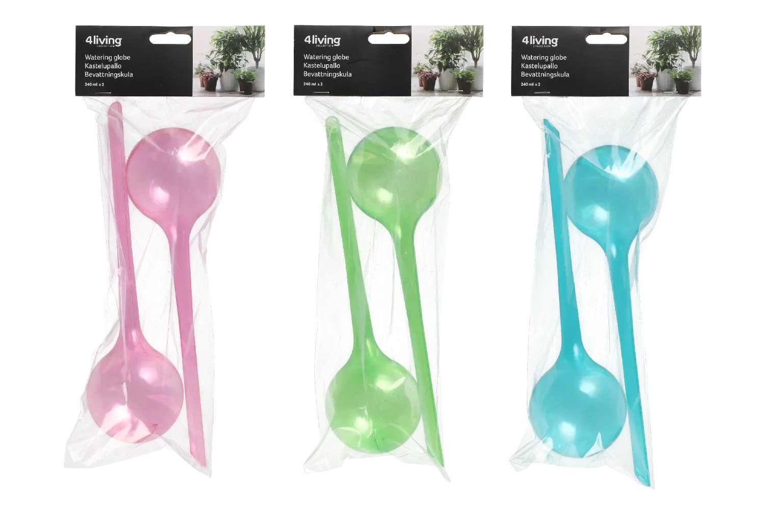 Kastelupallo on käytännöllinen ja kaunis kasteluapulainen. Täytä pallo vedellä ja työnnä sen kapeampi pää multaan. Kasvi imee vettä tarvitsemansa määrän pikkuhiljaa. Erittäin kätevä esimerkiksi matkan ajaksi. Vetoisuus 240 ml.