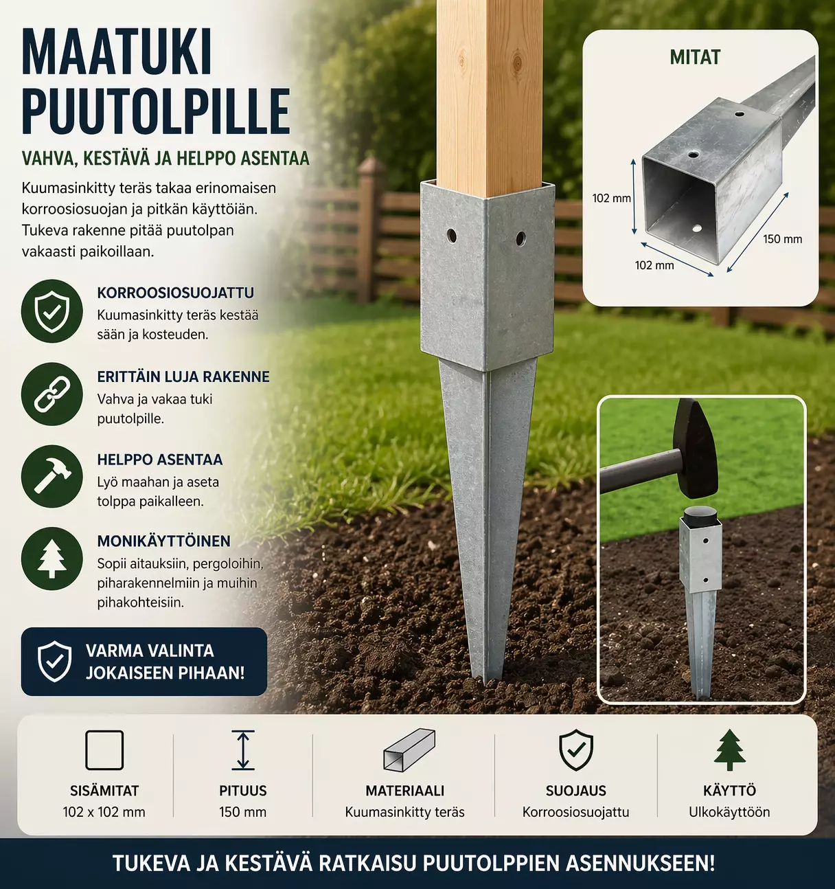 Aitatolpan jalka 102X102X750mm