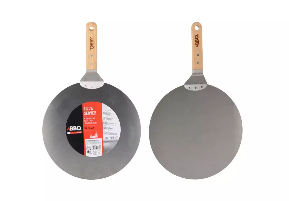 Tuote: BBQ-pizzatarjoilija Halkaisija: 12 tuumaa / 30,5 cm Kokonaispituus: 49 cm Paistopinnan paksuus: 0,7 mm Terän materiaali: Ruostumaton teräs SS430 Kahva: Hevea Brasiliensis -puuta Sertifiointi:... Lue lisää