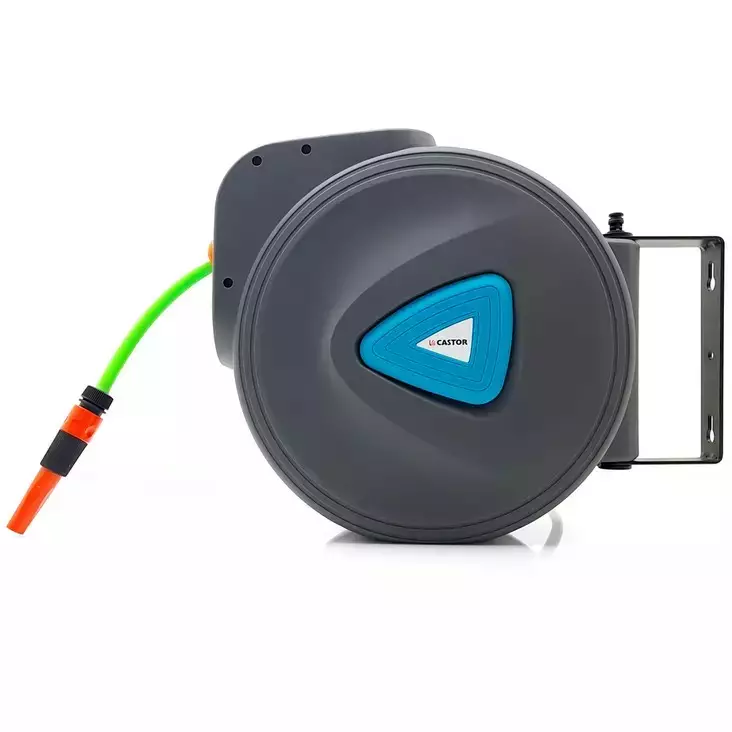 Pituus 20m + 2m. Letku 1/2", maks. 8 bar. Suuttimella ja automaatisella sis. kelauksella. Ulosveto pysäytystoiminnolla, liitosletku 1,5m. Liitin 3/4". Kääntyvä seinäkiinnike.... Lue lisää
