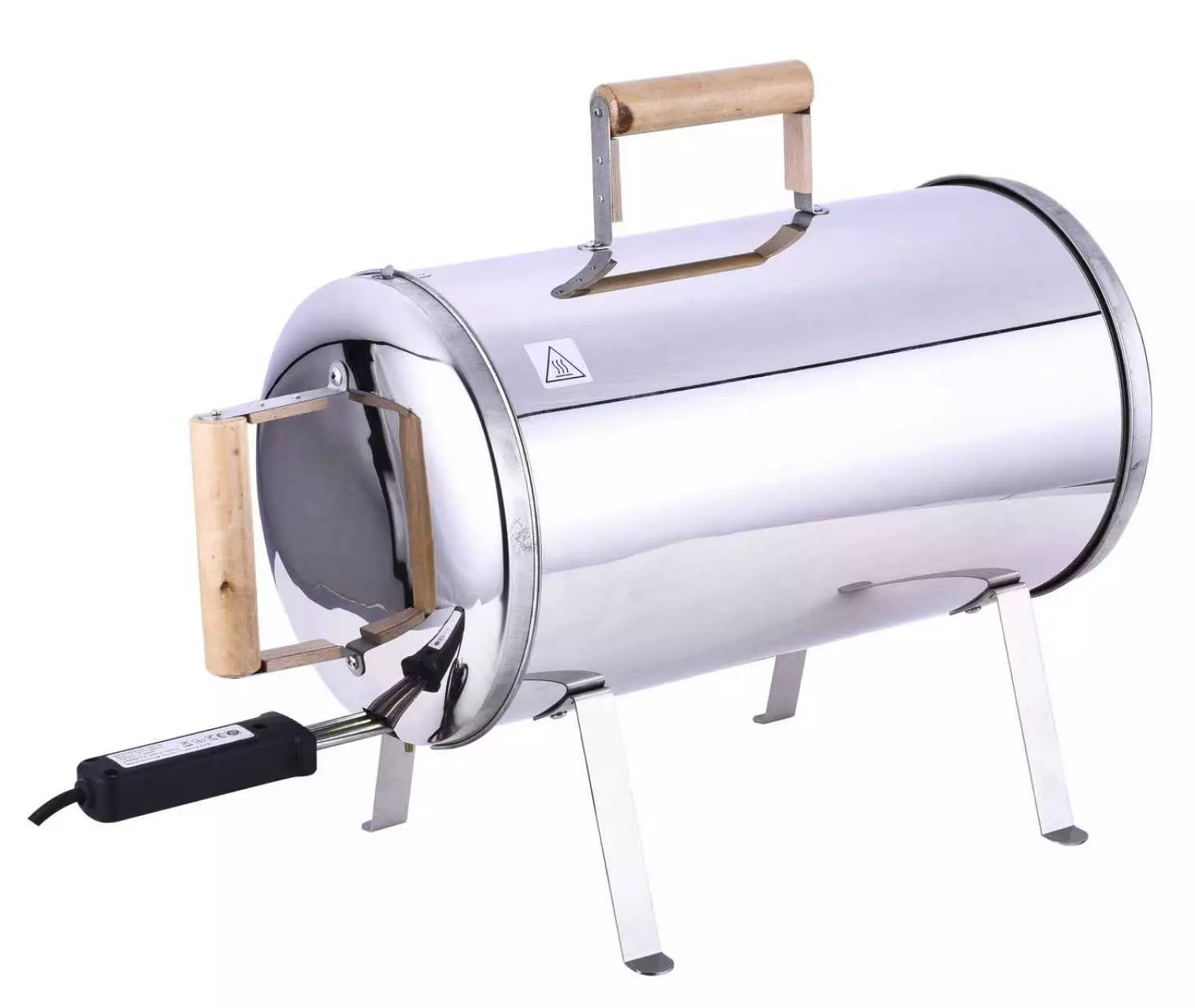 Savustin on varustettu kestävällä metallirungolla sekä puisilla kahvoilla, jotka pysyvät miellyttävän tuntuisina käsitellä. Tukeva jalusta nostaa laitteen irti alustasta ja lisää käyttömukavuutta sekä vakautta käytön aikana.