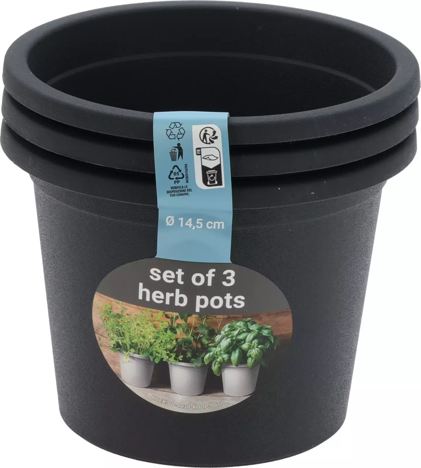 Yrttiruukut 3 kpl – Ø 14,5 cmKäytännöllinen kolmen yrttiruukun setti kotipuutarhurille. Ajattoman mustat ruukut sopivat niin keittiön ikkunalaudalle, parvekkeelle kuin kasvihuoneeseen.... Lue lisää