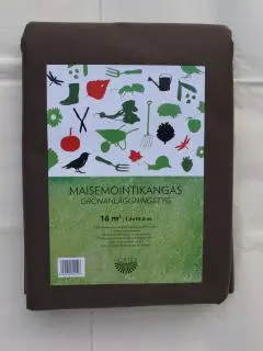 - UV-suojattu ruskea kuitukangas, 50 g/m², joka suojaa istutuksia mm. rikkakasveilta