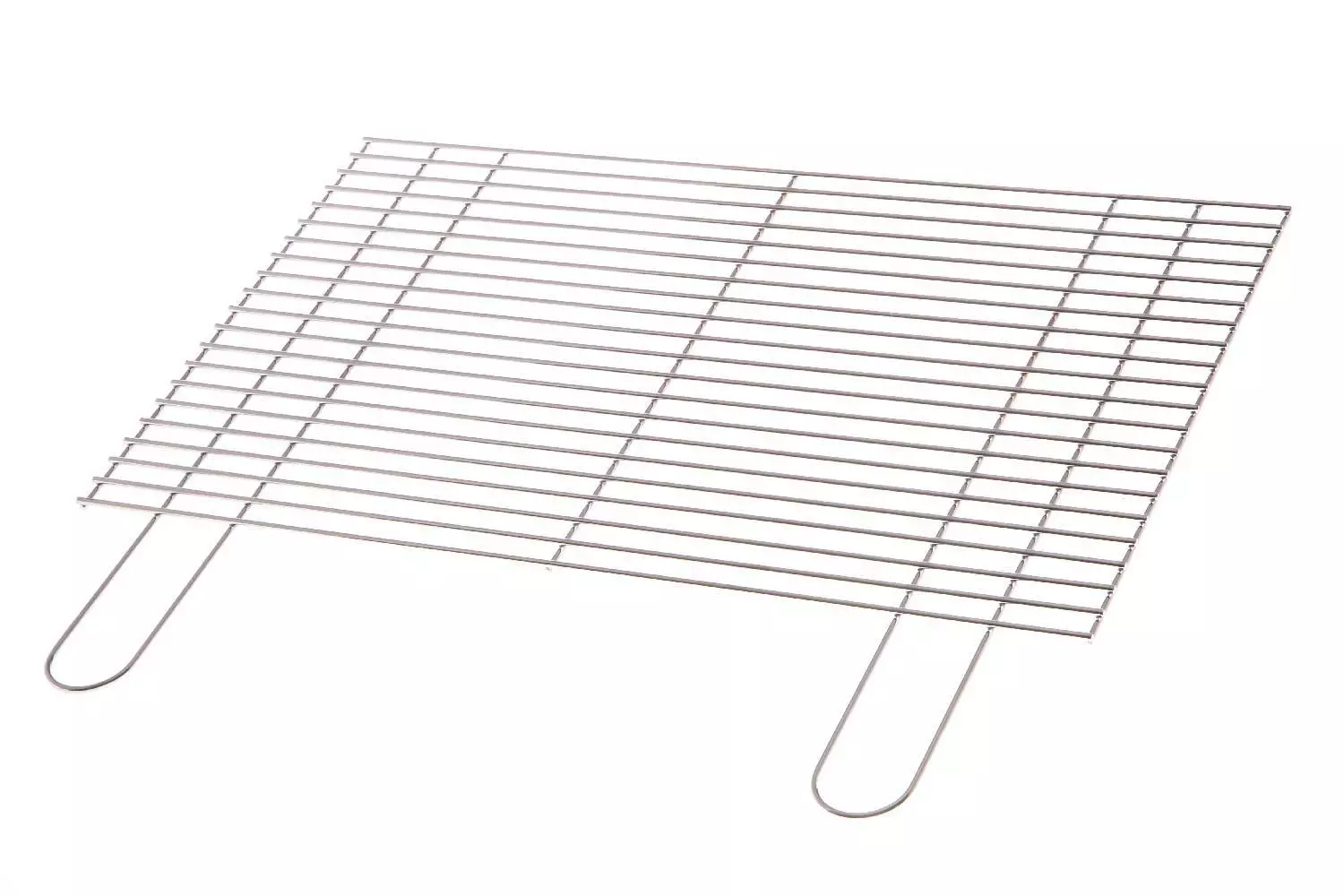 Ruostumattomasta teräksestä valmistettu grilliritilä muurattaviin pihagrilleihin ja tulisijoihin, kahdella kahvalla. Ritiläosa 67 x 40 cm, kahvan kanssa 55 cm. Vahvuus 5 mm. Käsinpesu.