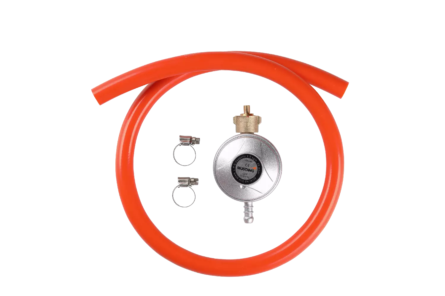 Säädin soveltuu sivuventtiilipulloon. Käyttöpaine 30mbar. Kaasuletku 1 m/10 mm. Pakkaskesto -30 astetta. Letkunkiristimet 2 kpl, säädin EN16129 ja EN16436 -hyväksytty muovisekoiteletku.