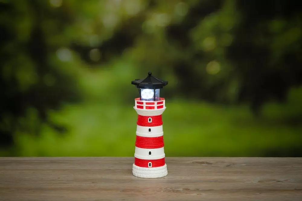 Merellinen majakkapatsas pyörivällä majakanvalolla. 1 kpl kylmä valkoinen LED 0.06W, 2lm. Akun tyyppi 1.2V AAA 200mAh Ni-Mh ladattava akku. Aurinkopaneelin tyyppi, jännite ja virta: amorfinen silikoni, 2V, 20mA. Toiminta-aika täyteen ladattuna: 6 tuntia IP-luokka: IP44.