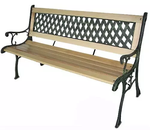 Valurautarunkoinen perinteinen puutarhapenkki.122x65x80cm. Selkänojan ristikko muovia.