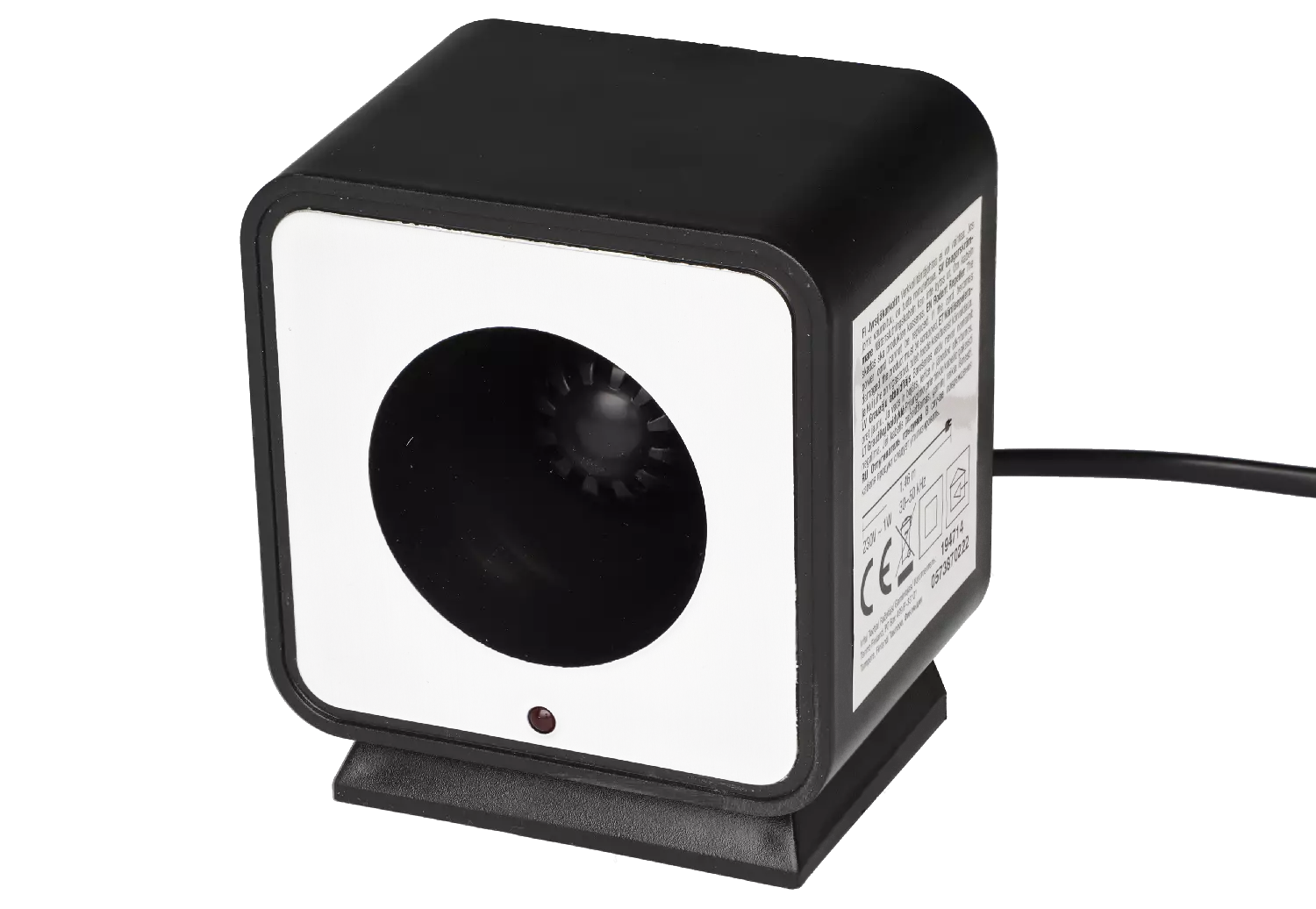 Ultraäänitoiminen jyrsijäkarkoitin, jonka lähettämät korkeataajuuksiset (30-50 kHz) äänet karkottavat hiiret, rotat ja muut jyrsijät noin 30 neliömetrin alueelta. Tuotteessa manuaalinen taajuudensäädin. 1W, 230V, 50Hz.