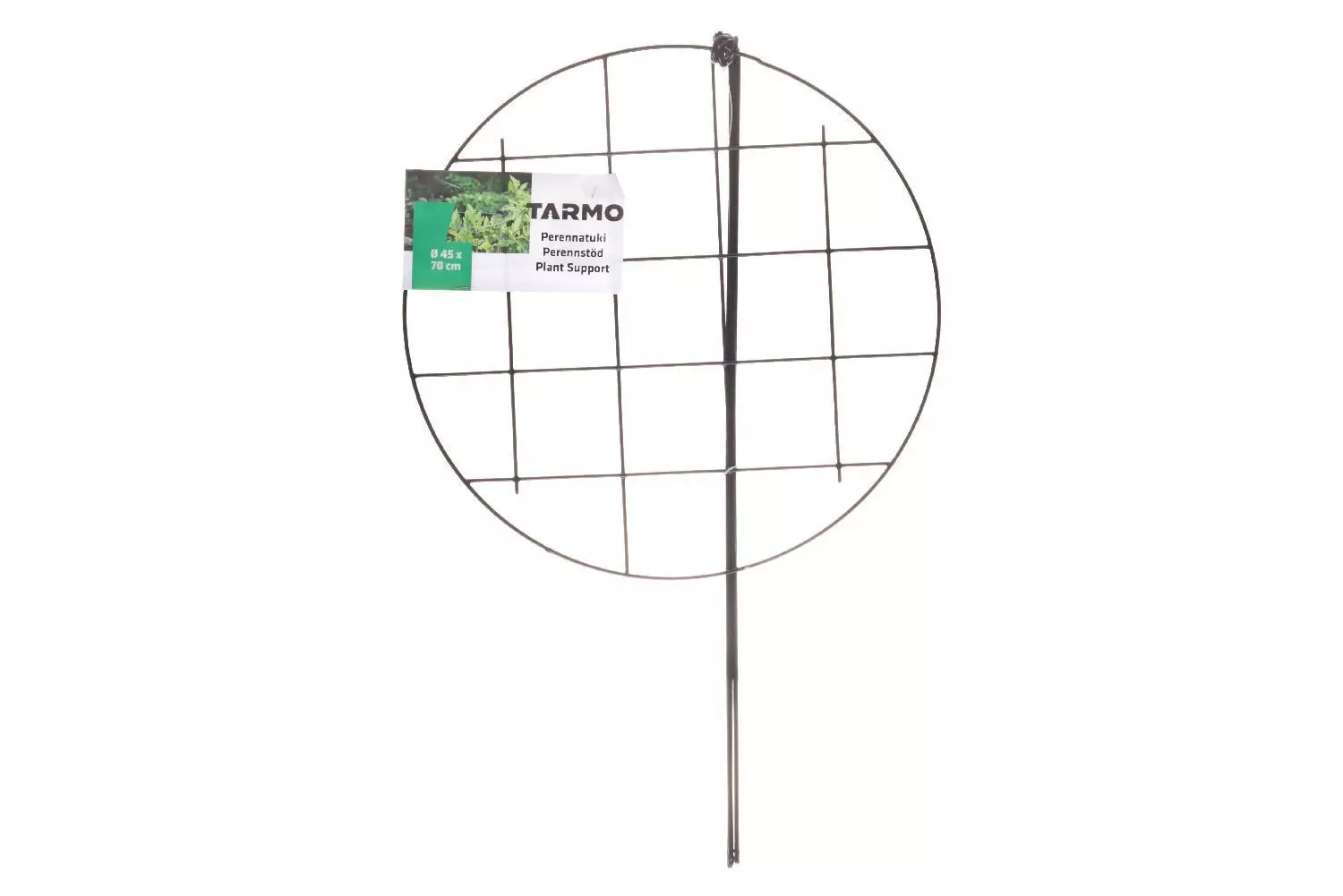 Metallinen perennatuki / kasvituki tukee kasvien ja kukkien varsia ja auttaa säilyttämään oikean kasvusuunnan. Antaa tuen puutarhan perennoille ja pensaille helpottaen niiden kasvua. Perennatuen korkeus on 70 cm ja halkaisija 45 cm.