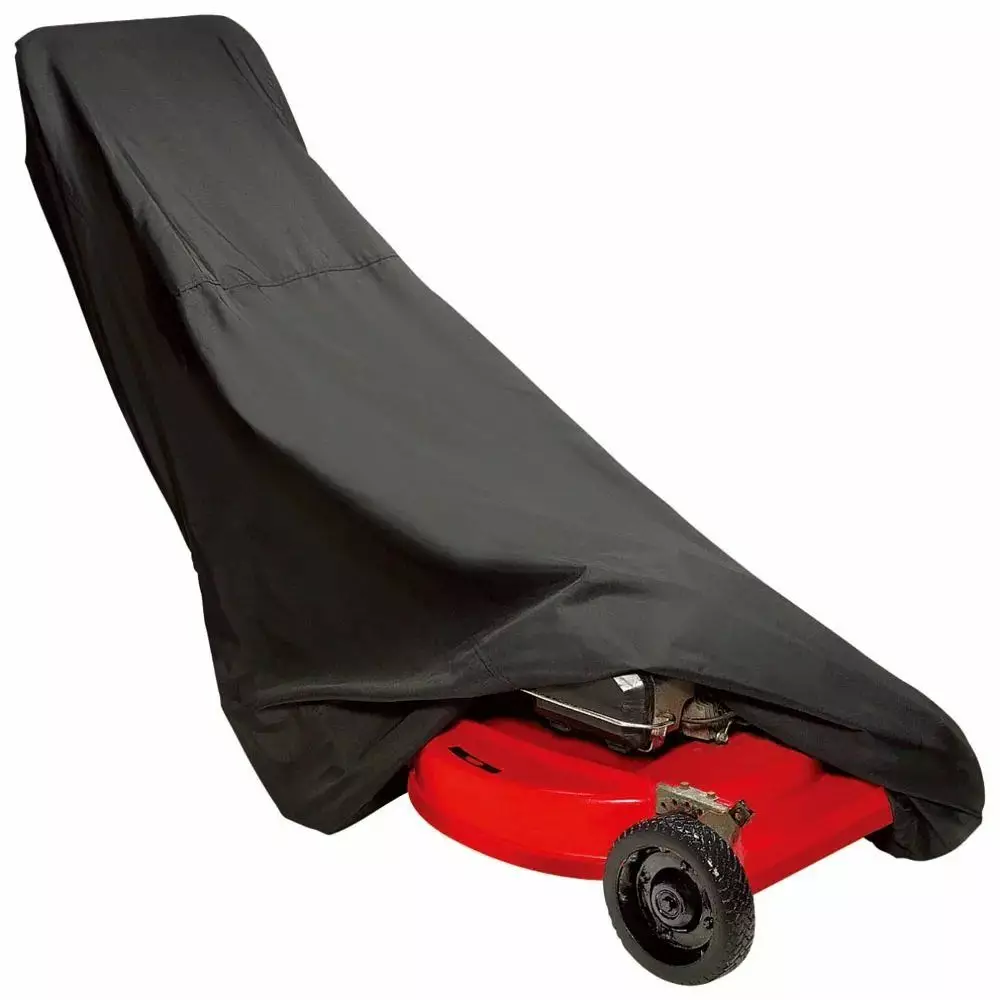 Muotoiltu suojapeite työnnettävälle ruohonleikkurille. Antaa suojaa ruohonleikkurille pölyä, sadetta, lunta tai auringon paahdetta vastaan. Helppo asettaa leikkurin päälle ja helmassa olevan kuminauhakiristyksen ansiosta pyysyy peite hyvin paikoillaan. Mitat: 180/150 x 56 x 114 cm. Materiaali: PA pinnoitettu 200D Oxford kangas (UV:n kestävä). Kuminauhakiristys helmassa. Säilytyspussi. Väri: musta. Takuu 1 vuosi.