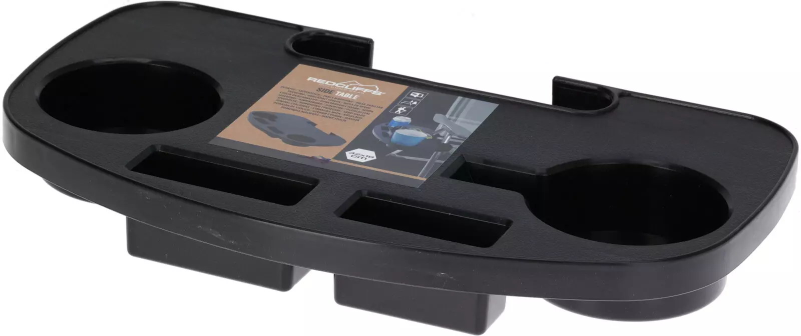 Useat lokerot ja mukitelineet pitävät tavarat tukevasti paikoillaan. Tarjotin on helppo asentaa tuolin käsinojaan ilman työkaluja, ja kevyt mutta kestävä rakenne tekee siitä käytännöllisen lisävarusteen retkille, terassille, parvekkeelle tai puutarhaan.