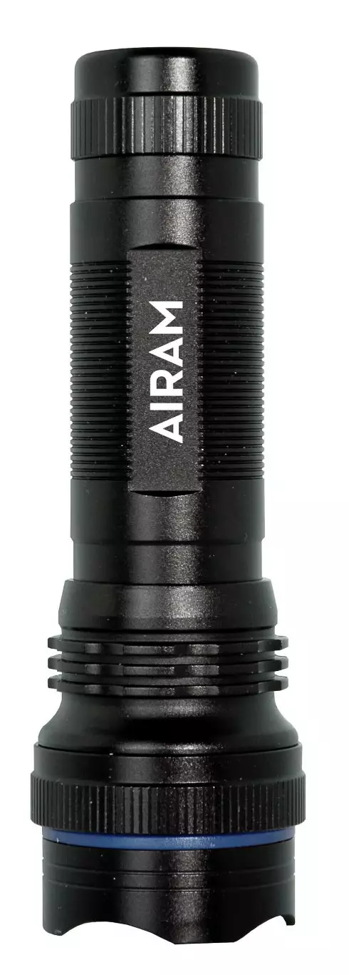 Airamin Magnum 500 taskulampussa on hyvä linssioptiikka, joka luo ympäristöön runsaan ja puhtaan valokuvion. Hohtava sininen rengas lisää näkyvyyttä sivuille. On/off-kytkin loistaa pimeässä vihreänä ja on helppo huomata. Taskulamppu on vesitiivis (IP65), ei sovellu sukellusharrastukseen. Tuote kestää myös pudotuksen kahdesta metristä. Alumiinirunko, väri musta. Halkaisija 40 mm, pituus 124 mm. Rannelenkin avulla tuote pysyy menossa mukana tai sen voi ripustaa roikkumaan.