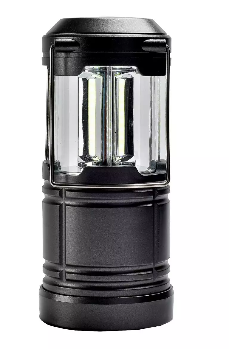 Kätevän kokoinen retkilyhty kulkee mukana matkassa. Valo-osa sulkeutuu rungon sisälle ja vedetään sieltä tarvittaessa ulos, jolloin valo syttyy. Lyhty toimii molemmin päin: aseta lyhty seisomaan tai ripusta se pohjassa olevasta koukusta roikkumaan esim. teltan kattoon. Taivuta rungonmyötäiset metallisangat ylös, niin voit pitää lyhtyä tukevasti kädessäsi, kun kuljet hämärässä.3 x 2W COB led 250 lm.Valo: 100 % - off. Valo syttyy vetämällä valo-osaa ulos rungosta ja sammuu, kun valo-osan painaa takaisin rungon sisälle.Paristot 3 x AA, ei mukana pakkauksessa.
