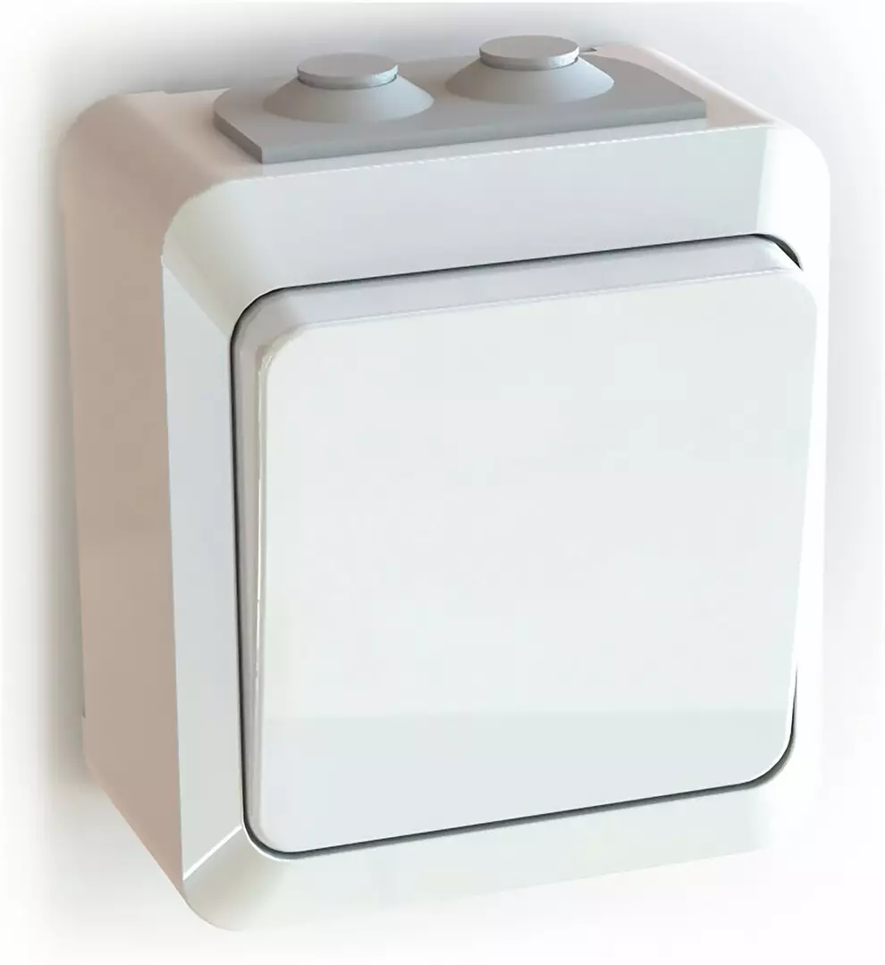 Pinta-asennettava roiskevesitiivis Etman-kytkin 1/6 jousiliittimin. Kytkimessä on 2 lisäliitintä, joita voidaan käyttää johtimien jatkamiseen. Liittimiin voi kytkeä max 2 johdinta ja ne on hyväksytty ML ja MK johtimille.