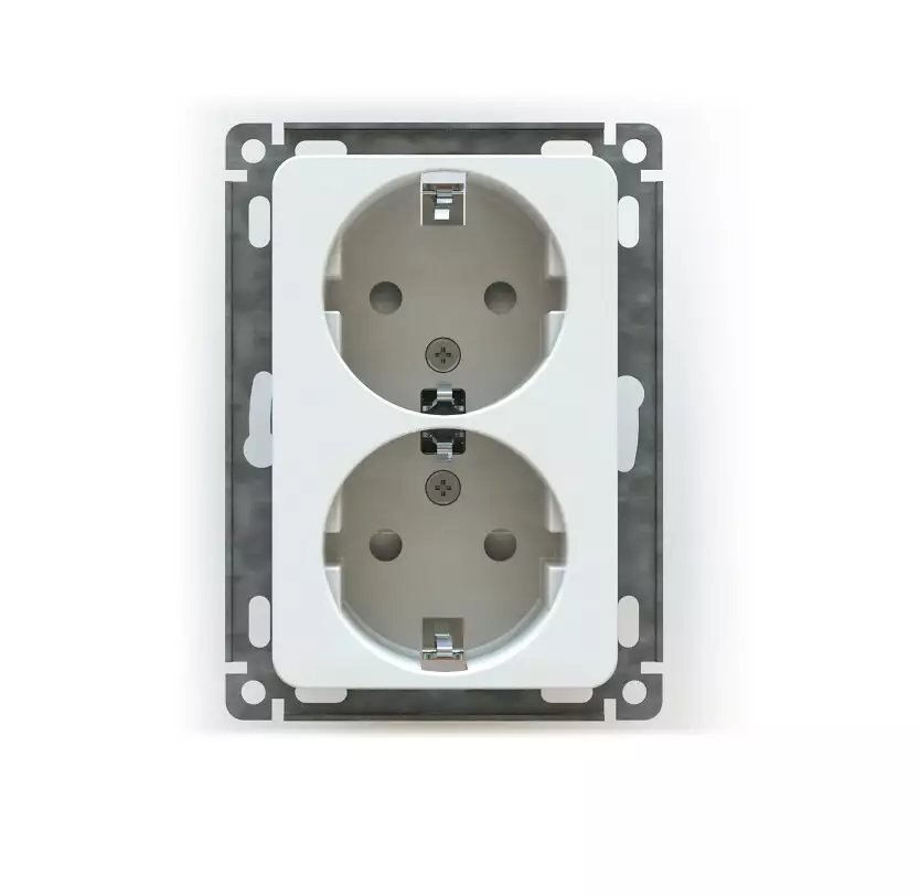 Keskiölevyllinen jousiliittimin varustettu maadoitettu Etman-pistorasia uppoasennukseen. Pistorasiassa on liittimet kutakin kosketinta kohden. Niihin voidaan kytkeä maksimissaan neljä johdinta. Liittimet on hyväksytty ML ja MK johtimille.