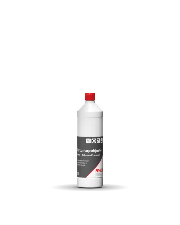 Fescon Tartuntapohjuste on vesiohenteinen tartuntapohjuste (primer) alustan esikäsittelyyn. Tartuntapohjustetta käytetään osana Fescon Vedeneristysjärjestelmää. Soveltuu käytettäväksi myös kaikille Fescon lattiatasoitteille ja seinätasoitteiden rasitusluokan parantamiseen. Parantaa tartuntaa alustaan, sitoo pölyä, ehkäisee ilmakuplien muodostumista sekä estää tasoitteessa olevan veden liian nopean imeytymisen alustaan. Sisäkäyttöön. Pakkauskoko 5 x 3 l/laatikko ja 10 x 1 l/laatikko. Tartuntapohjuste on osa Fescon Vedeneristysjärjestelmää. Sertifikaatti nro VTT-C-870-06. Fescon Vedeneristejärjestelmässä käytettävä tartuntapohjusteSoveltuu kaikille Fescon lattiatasoitteilleTartuntapohjusteella voidaan parantaa seinätasoitteiden kulutuskestävyyttäSisäkäyttöön
