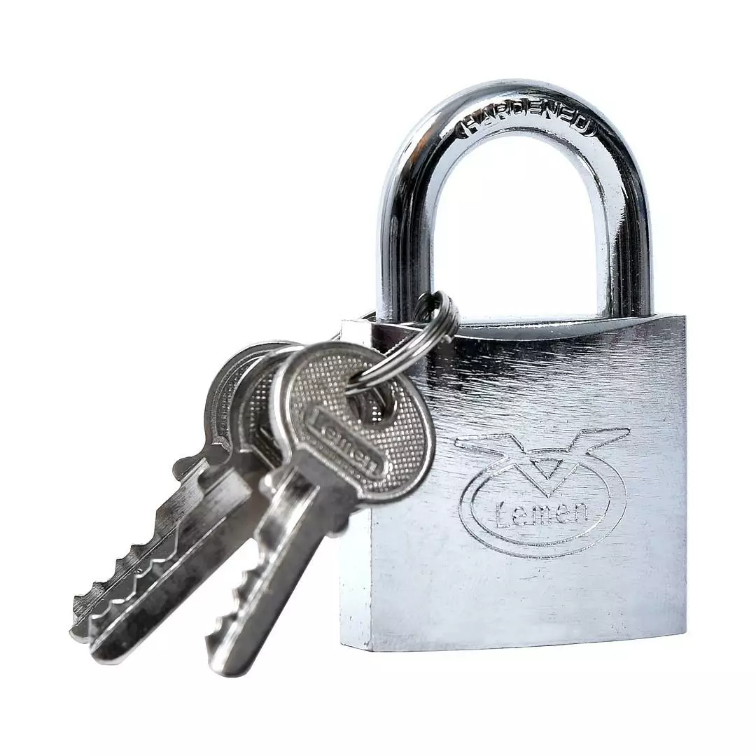 Riippulukon sanka on karkaistua kovaterästä. Sylinteripesä on messinkinen ja Swisser-tyyppinen. Mukana kolmet avaimet. Materiaali: teräs. Lukkopesä messinkiä. Pituus: 38 mm.... Lue lisää