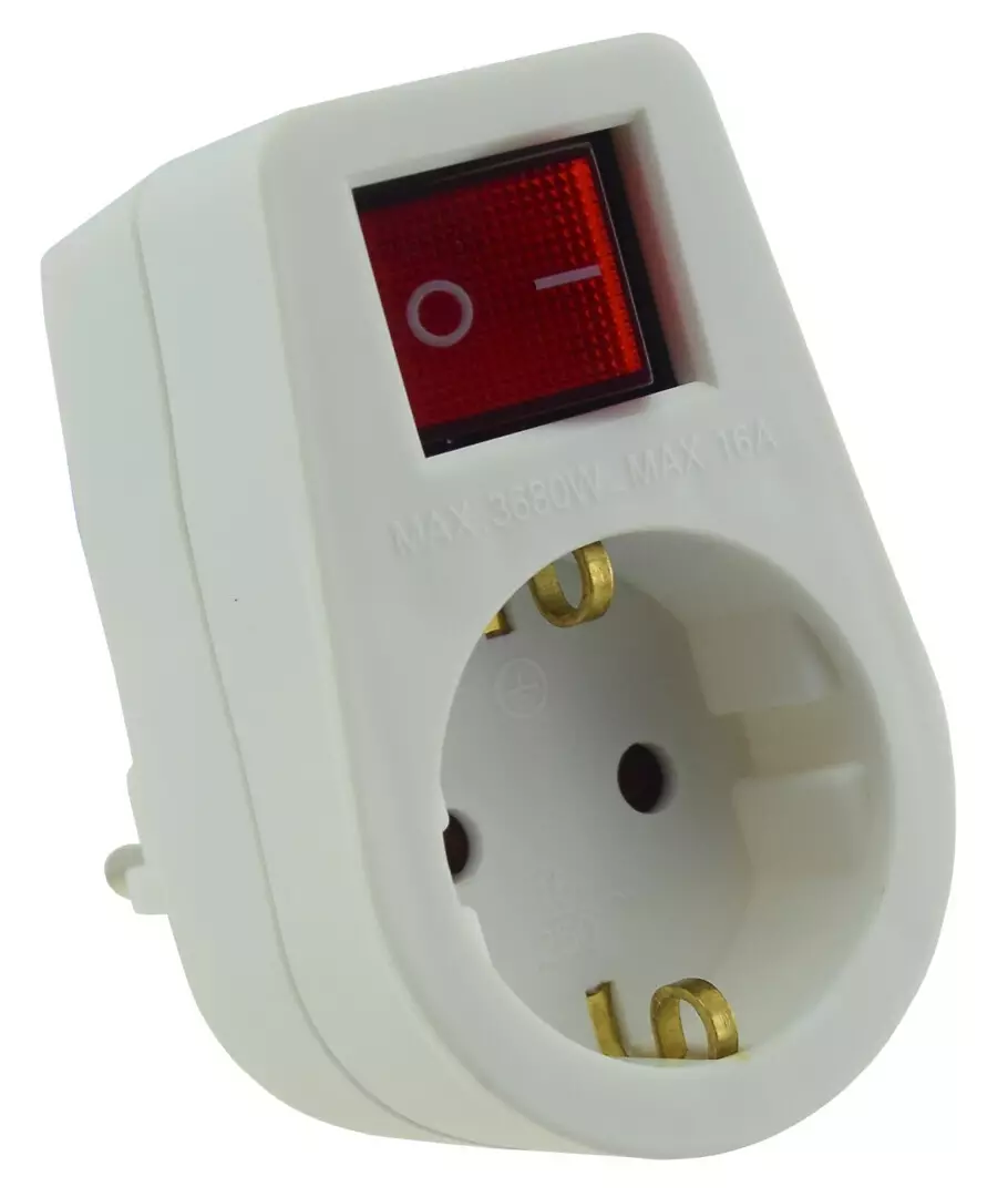 Kytkimellä ja lapsiturvalla varustettu 1-osainen haaroituskosketin sisäkäyttöön.