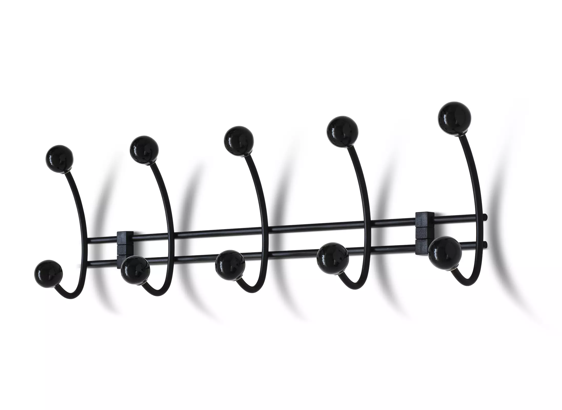 Naulakko terästä, posliininupit. Sopii yhtä hyvin makuuhuoneeseen kuin eteiseenkin. Naulakko, jossa reilusti tilaa vaatteille, käsineille, pusseille jne.