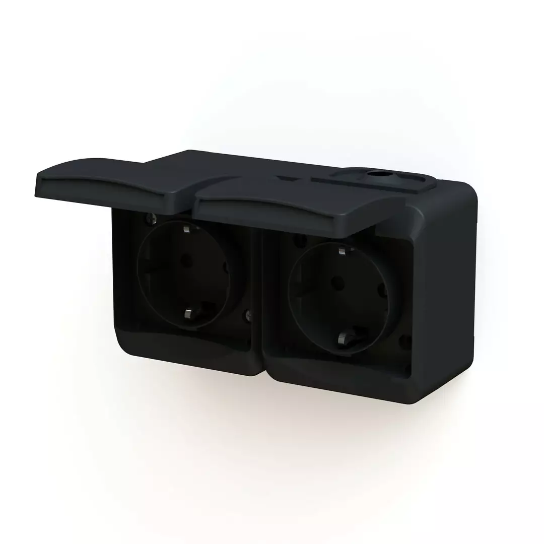 Harju HIILI-sarjan pinta-asennettava maadoitettu 2-osainen musta pistorasia. Roiskevesitiivis pistorasia soveltuu kosteisiin tiloihin ja ulkokäyttöön. Kytkentä ruuviliittimin. Kotelointiluokka IP44. HIILI on Harjun uusi tyylikäs mattamusta sähkökalustesarja pinta- ja uppo-asennuksiin sisä- ja ulkokäyttöön. HIILI sopii monenlaisiin sisustuksiin. Matta pinta on myös helppo pitää puhtaana, sillä sormenjäljet eivät näy pinnassa.