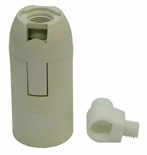 E14-kannalla ja vedonpoistonipalla varustettu lampunpidin. M10 kierre. Jousiliittimet.