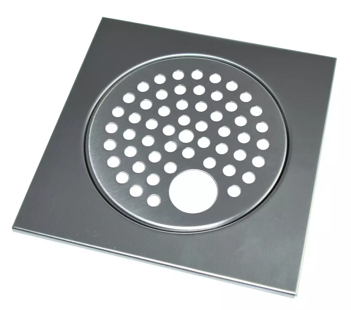 Harjun kiiltävä rosterinen sopii hyvin erityisesti vaaleamman kaakelilaatan kanssa. Kehyksessä kahden asteen virtauskaato keskiöön ja 32 mm reikä vesialtaan lattiaputkea varten.