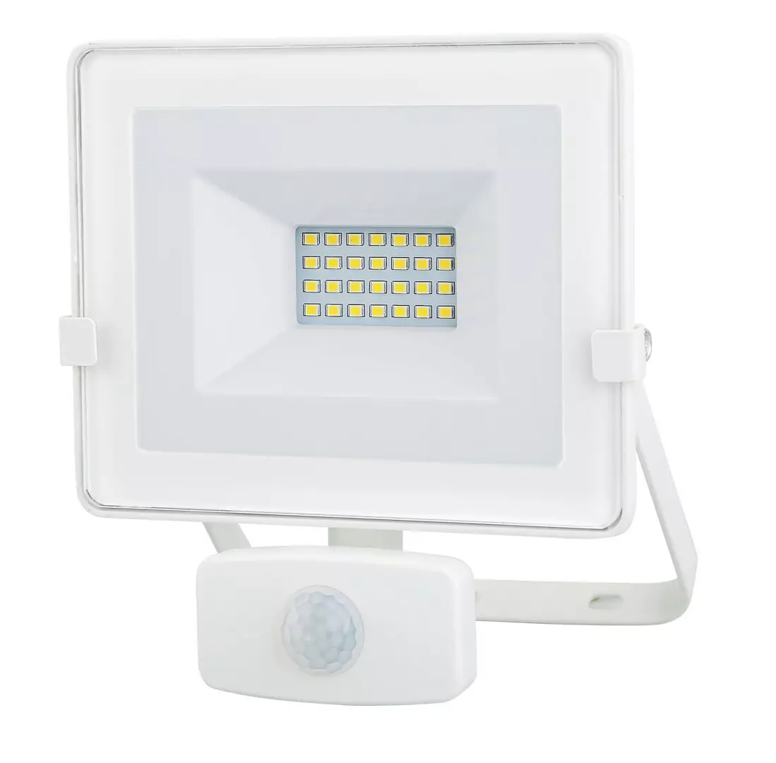 PIR-liiketunnistimella varustettu 20 W led-valonheitin valaistukseen sisällä ja ulkona. Valoteho 2000 lm. Valkoinen runko alumiinia. Paloajan-, tunnistusherkkyyden- ja valoherkkyyden säätö. Myös PIR-tunnistimen asento säädettävissä. Takuu kaksi vuotta. IP44.