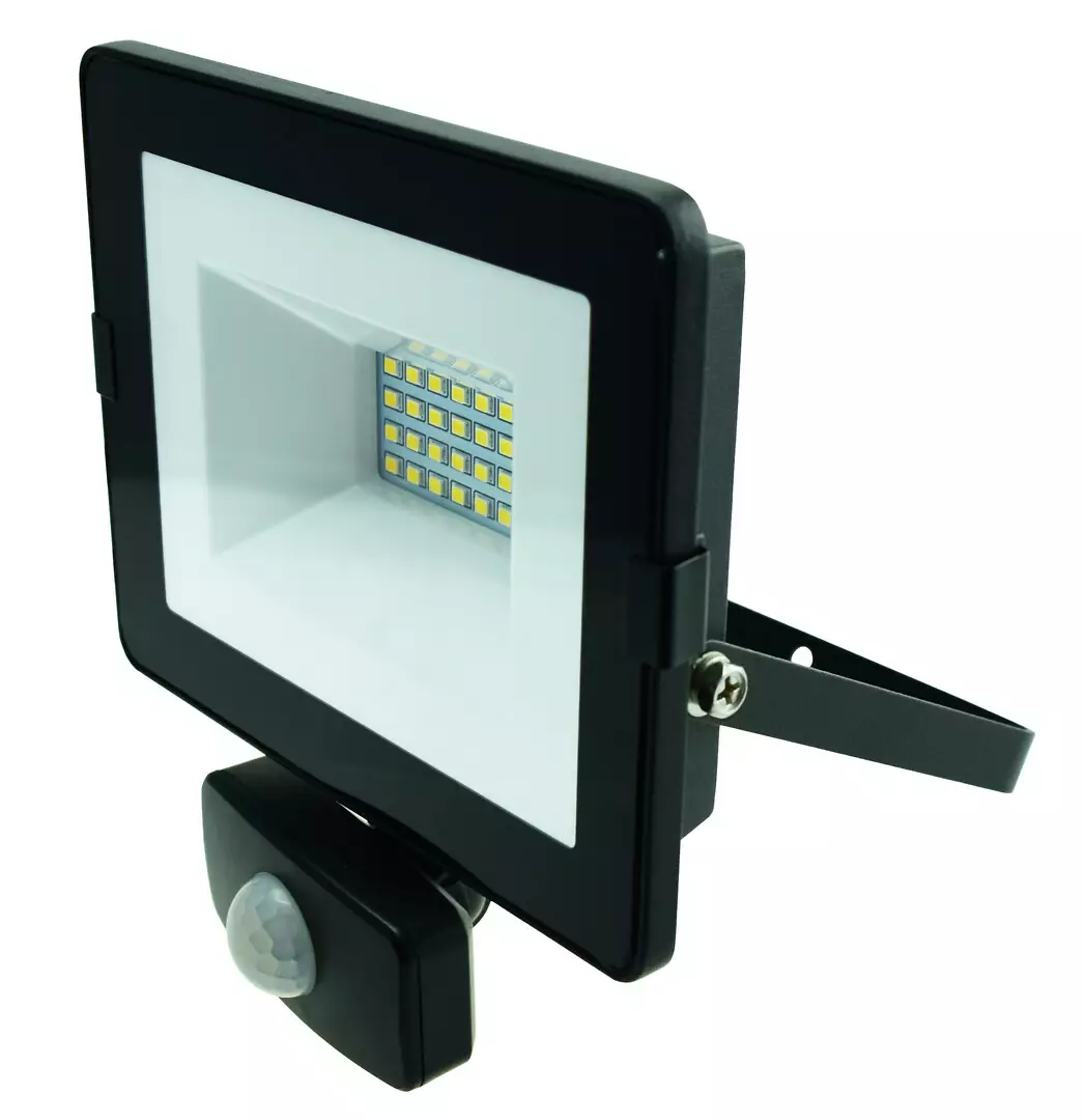 PIR-liiketunnistimella varustettu 20 W led-valonheitin valaistukseen sisällä ja ulkona. Valoteho 2000 lm. Musta runko alumiinia. Paloajan-, tunnistusherkkyyden- ja valoherkkyyden säätö. Myös PIR-tunnistimen asento säädettävissä. Takuu kaksi vuotta. IP44.