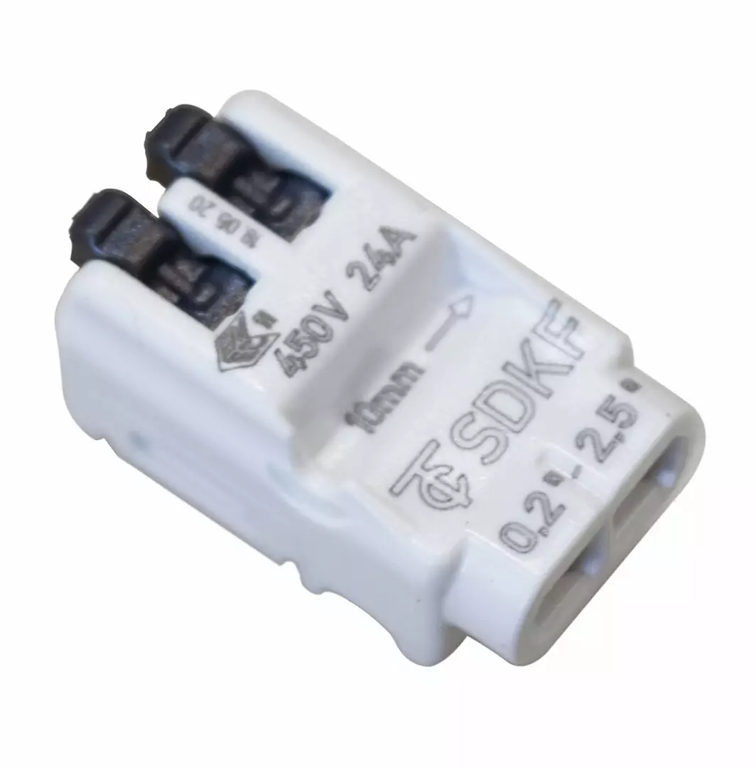 Vipuliitin 2-napainen 5 kpl Tekniset tiedot:Nimellisjännite 450 VNimellisvirta 24 AMax. ympäristön lämpötila T85Johdon kuorimispituus 9 + 1 mmJohtimen paksuus 0.2 - 2.5 mm²