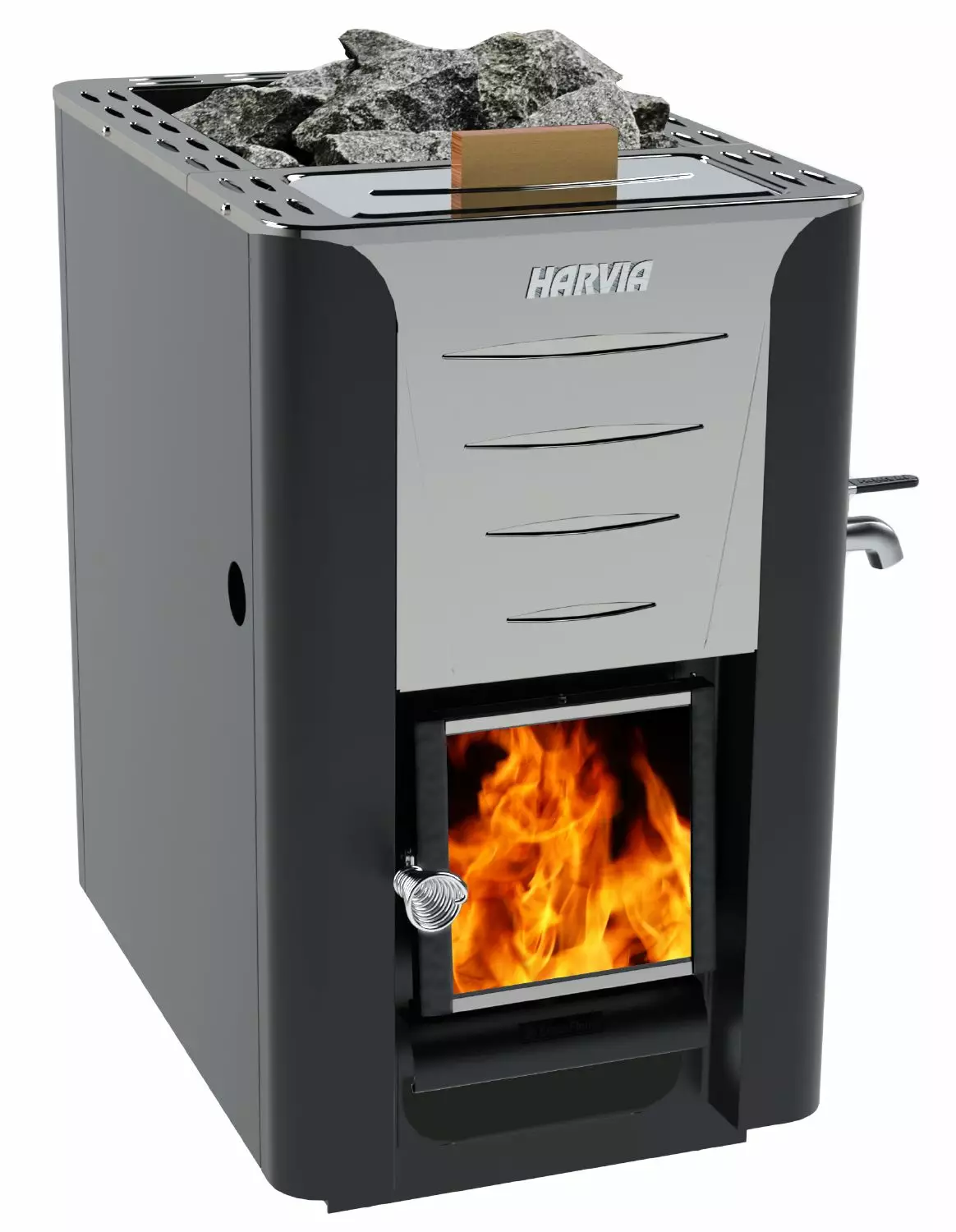 Pro-mallissa on grafiitin musta ulkokuori, etupuolella ruostumatonta terästä sekä tukeva ja näyttävä lasiluukku, josta saunaväki pääsee ihailemaan tulen rauhoittavaa loimua. Kiukaan suuren kivitilan ansiosta löylyt ovat niin makeat ja komeat kuin vain mökkiläinen voi toivoa.