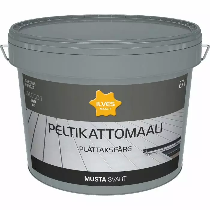 KÄYTTÖOHJE UUDET PINNAT: Peltikattoa ei suositella maalattavaksi uutena, vaan pellin annetaan hapettua kaksi vuotta, jotta maali tarttuu peltiin. Ennen maalausta pese katto peltipesuaineella voimakkaasti harjaten ja huuhtele vedellä. Sekoita Ilves Peltikattomaali hyvin ennen käyttöä ja maalaa katto kahteen kertaan.