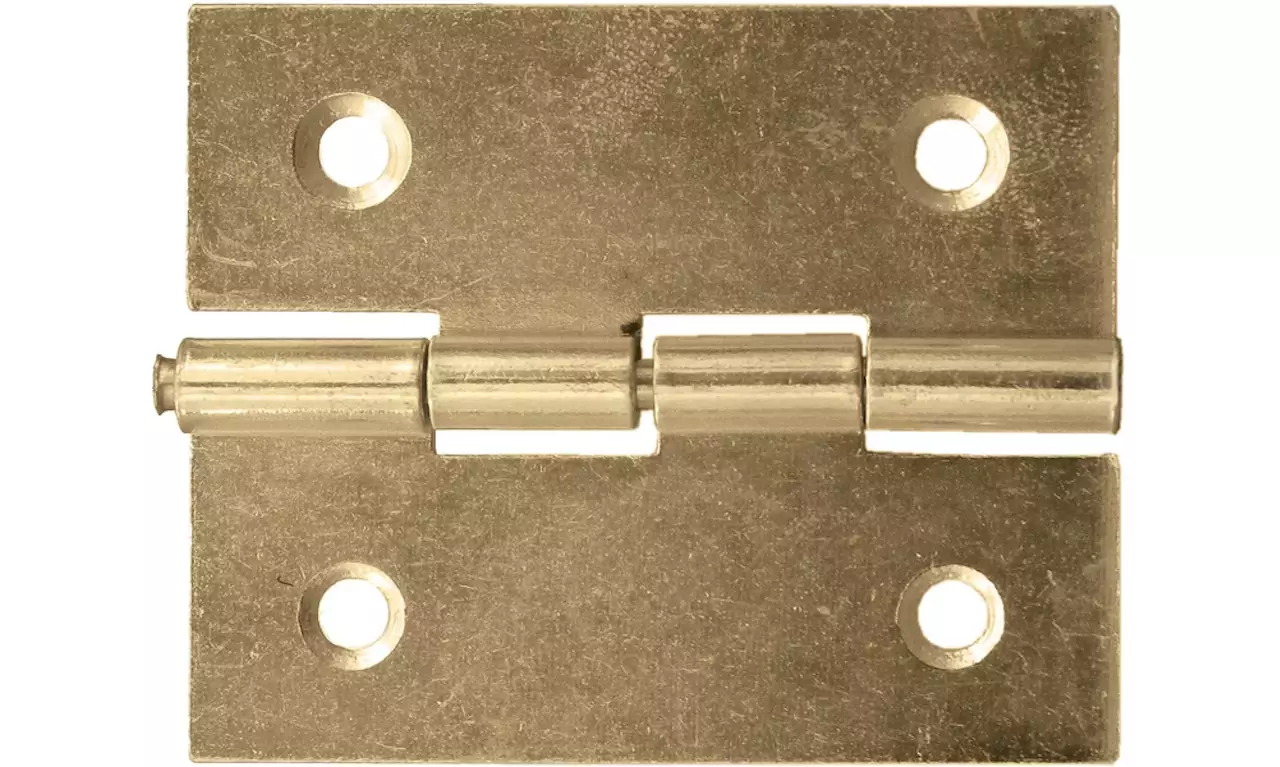 Messinkinen kaapinsarana. Pakkaus sisältää ruuvit.
