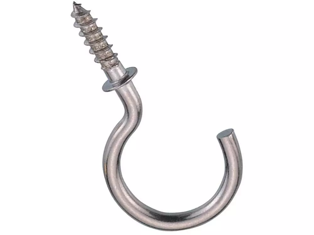 Ruostumattomasta teräksestä tehty laipallinen kattokoukku ulkokäyttöön. Pituus 41 mm, ainevahvuus 3,3 mm.